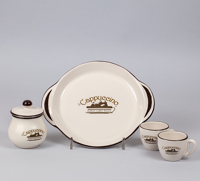 Bộ Khay Đựng Gốm Men Antique Enamel Ceramic Tray With 2 Cups + Sugar Bowl - il Cappuccino italian coffee house